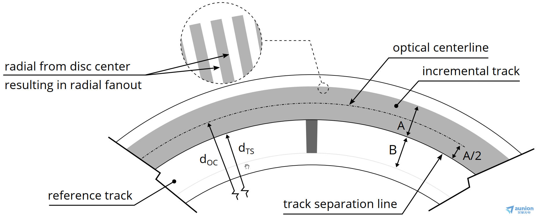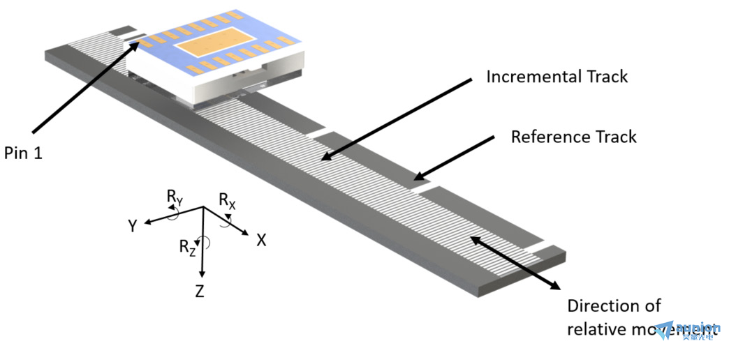 集成光源照亮一个刻度,包括一个间距为20 μm的增量光栅和一个带有绝对定位参考标记的轨道。所述反射光产生干涉图样,所述干涉图样由所述读头内的二极管阵列检测。刻度和读头之间的相对运动导致模拟正弦和余弦信号以及TTL形状的参考标记。