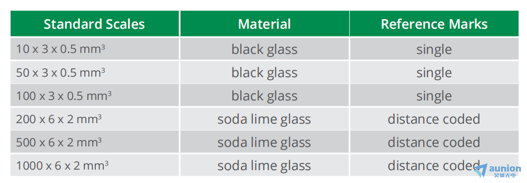 •直线光栅尺,圆光栅尺和测角计栅尺•刻度间距20µm