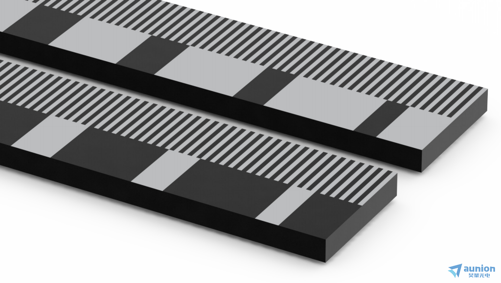 镀有反光铬涂层的玻璃是非常适合制作Metirio编码器测量刻度的材料。每个刻度包括一个高精度的增量轨道和一个附加的轨道携带参考标记。由于其多样性,Metirio还可以使用不同的材料和定制尺寸几何形状,以适应您的特殊应用。