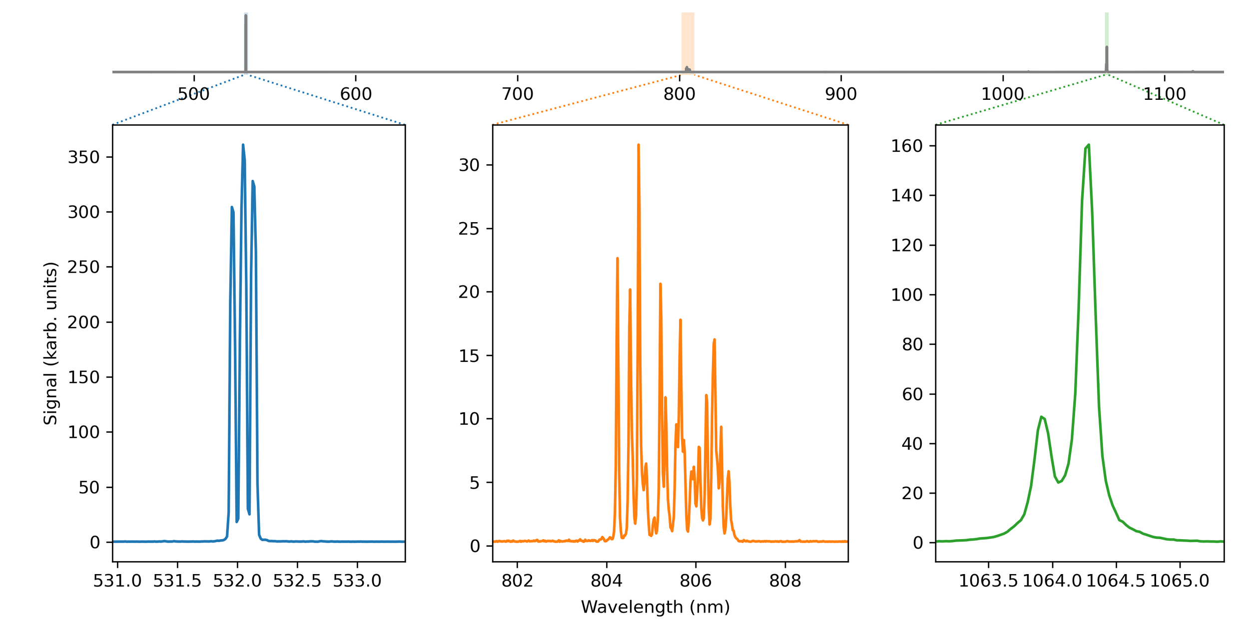 应用: 量子光源光谱分析,同时进行高分辨率多元素分析,激光光谱分析(例如监测激光模式),等离子体光谱分析
