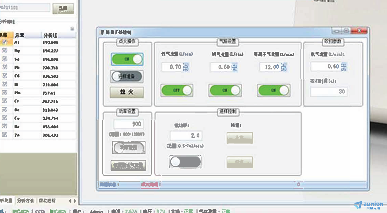 | 气路控制 | 配置3路高精度质量流量控制器,由ICP-OES软件直接控制,包括冷却气、辅助气、雾化气。精度0.01 L/min |