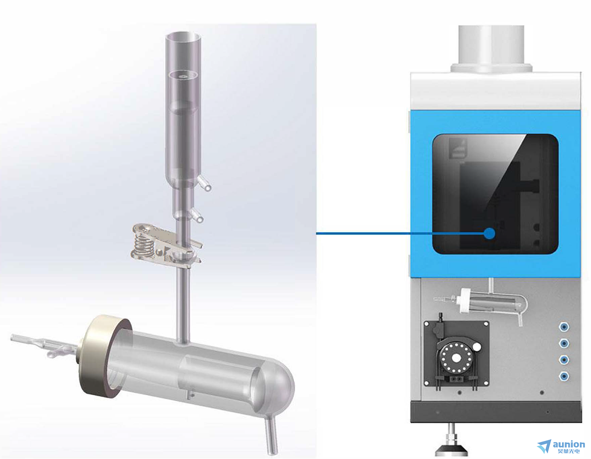 雾室与炬管的分体式设计,减少了燃烧室内温度变化带来的雾化效率的影响,更加直观的观测实时的进样状态。配合加长型雾室,有效进行气液分离,减少水蒸气的干扰。