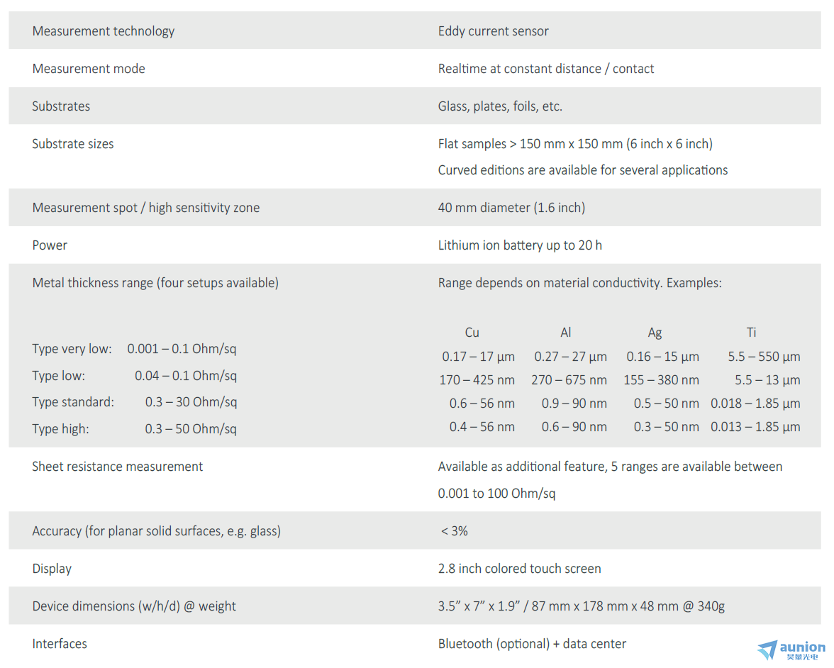 昊量光电新推出用于导电薄膜和薄金属层方块电阻测量的非接触式薄膜方块电阻测试仪EddyCus TF Series,这款非接触式薄膜方块电阻方阻测试仪可以非接触式实时测量,对导电薄膜和金属方块电阻精确测量,表征已被隐藏和封装的导电层,并把测量数据保存和导出。 可用于方块电阻,方阻测量。非接触式方块电阻方阻测量,可替代四探针传统测量。