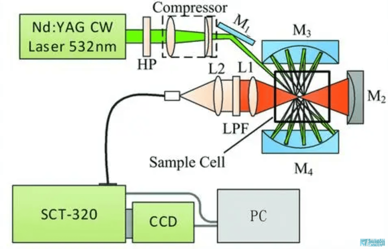 SERDS 技术的核心是用 “光谱减法” 破解荧光干扰难题,完美弥补共振拉曼等技术的荧光背景痛点。其原理通俗来说就是 “同物异光,减法去噪”:通过两台波长差异ji小(0.5-1nm)的激光器交替激发样品,获取两组拉曼光谱 —— 拉曼信号会随激发波长同步轻微偏移,而荧光信号在小波长范围内保持稳定,对两组光谱进行差分运算后,荧光背景与杂散光等系统性噪声会被大幅抵消,纯净的拉曼信号就能清晰凸显。