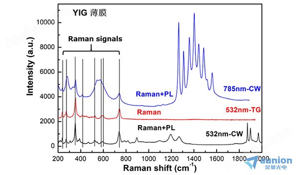 YIG在785CW,532CW,532TG下的拉曼谱图