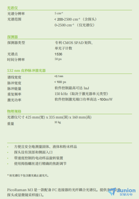• 荧光抑制核心:通过时间门控精准锁定亚皮秒级拉曼信号,将荧光干扰从根源剔除,与传统 CW(连续波)拉曼技术相比,实现高效荧光抑制;