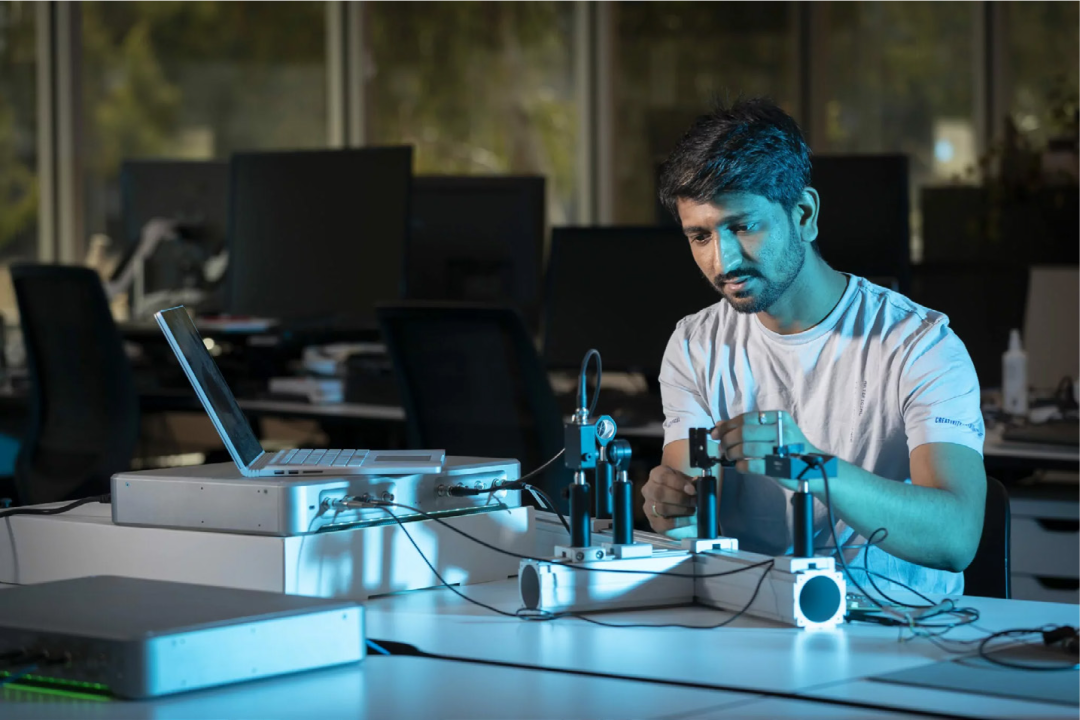 Moku:Lab的解决方案可以部署到地面或者空间中的引力波探测装置当中。Moku:Lab的激光锁频器或锁相放大器可以将激光的频率长期稳定地锁定到共振腔上,并在仪器中内嵌了PID控制器、示波器、以及信号记录仪。用户可以实时地对信号与参数进行调整与监测。双通道数字相位测量仪可以实时追踪输入信号的相位、振幅、以及频率,并绘制功率密度图、Allan Deviation等常用图表。频率响应分析仪可以表征干涉仪等仪器的复频谱响应,快速绘制出系统的传递函数。同时,内置的 FIR滤波器可以产生较为精确的信号延迟。