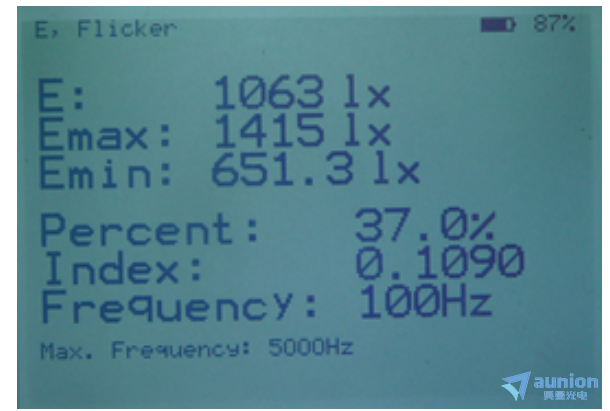 图 5:闪烁参数、Emax、Emin、闪烁百分比、闪烁指数和闪烁频率的显示