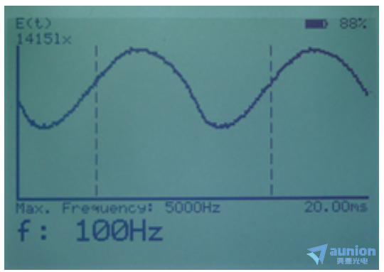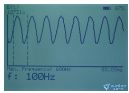 这意味着当预期频率非常高时,应选择二极管的zui短时间常数(即 50 毫秒)。生成的Max频率显示在相应的显示屏上(见图 7 的 5000 Hz)。另一方面,极低频信号需要更长的时间常数(参见图 11,1000 ms)。因此,频率分辨率要好得多,但要确定的Max频率因此降低。