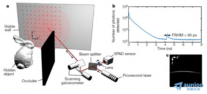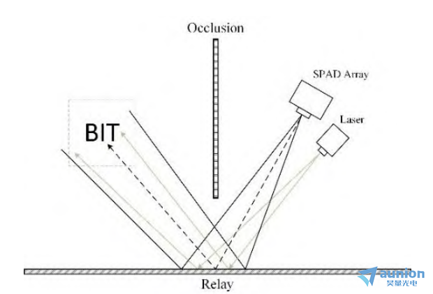 图3:激光器与单光子探测器共焦二维扫描非视域成像示意图