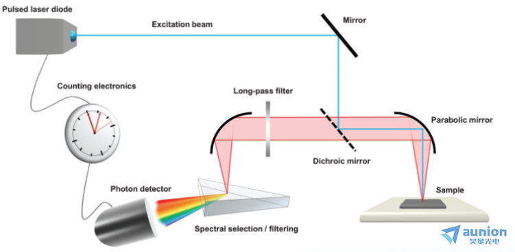 利用抛物面镜将激发光聚焦到样品上,确保佳的激发强度。该样品为钙钛矿薄膜或晶体,吸收激发光并发出具有光学特性的光致发光信号。
